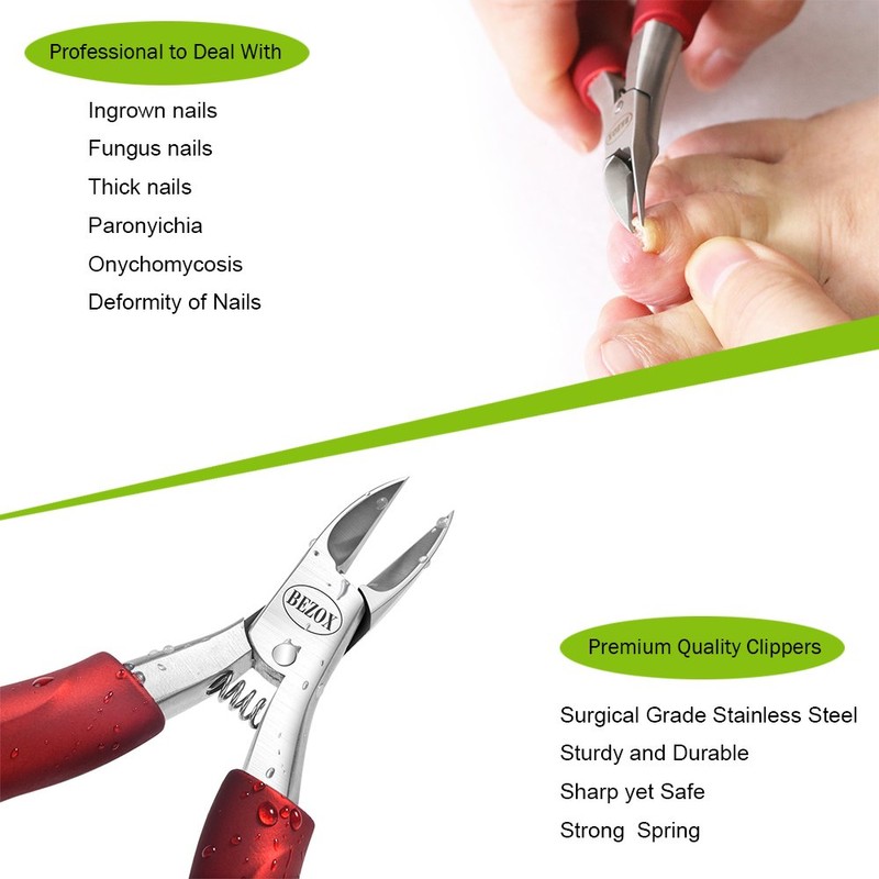 - Precision Trimming for Problematic Nails - Our BEZOX Comfort Grip Ingrown Toenail Clippers are specially designed to tackle ingrown and curly nails. With curved jaws and a pointed blade head, these clippers go deep into the nail groove, providing precise trimming for those hard-to-reach areas. Say goodbye to discomfort and hello to well-groomed nails.