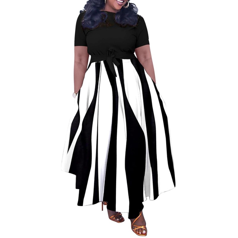 BFFBABY Plus Size Dress A Line Dresses for Women Summer Long Dresses with Sleeve Casual Belted