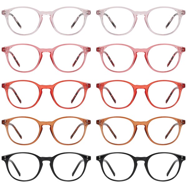 - 10 Pairs Stylish Readers: Get 10 pairs stylish reading glasses with round frame. These readers glasses come in a variety of colors to suit your style. You can choose a pair that matches your outfit or mood.