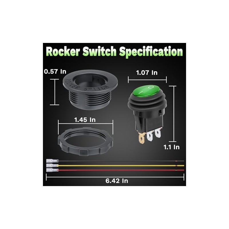 - High-Quality Material:Made with durable plastic and brass terminals, the rocker switch ensures long-lasting performance. The switch is also waterproof and dustproof, providing reliable operation in various environments. It meets automotive and marine-grade standards for quality and safety