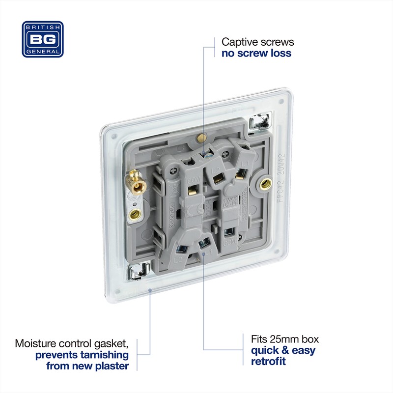 - BG ELECTRICAL IS PART OF LUCECO PLC: They guarantee against faulty materials and workmanship for 25 years – giving you total peace of mind