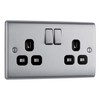 BG Electrical NBS22B-01 Double Switched Power Socket, Brushed Steel with Black Inserts, 13 Amp, 3.0 cm*14.65 cm*8.6 cm