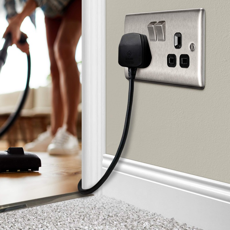 - SLEEK AND SLIM BRUSHED STEEL DOUBLE SWITCHED POWER SOCKET: From BG Electrical, has softly rounded corners and colour matching fixing screws– combining quality with modern elegance