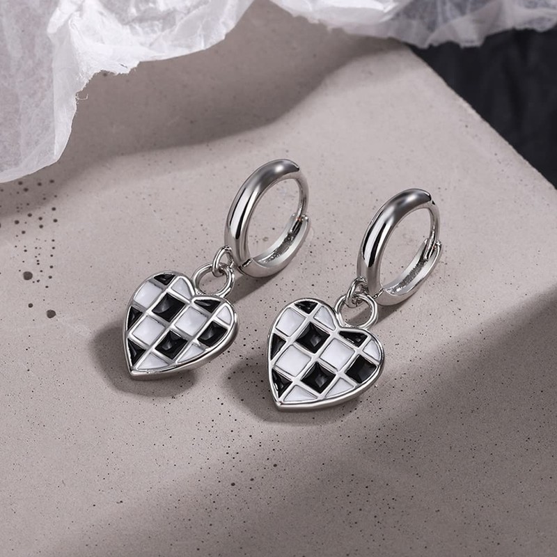 BG&WLing Black White Checkered Love Heart Huggie Hoop Earrings 925 Sterling Silver Small Huggie Hoops Hypoallergenic Dainty Jewelry for Women (Dangle)