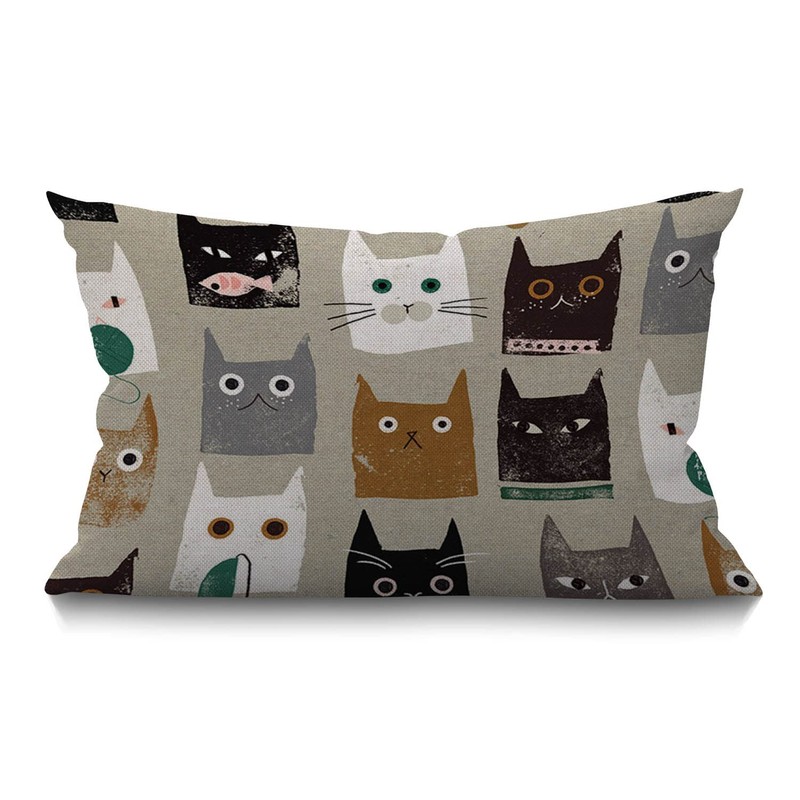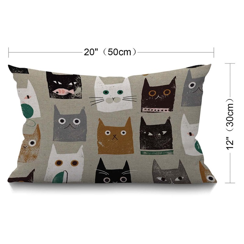 BGBDEIA Cushion Cover Lovely Cat Cartoon Abstract Pattern Rectangle Outdoor Cushion Covers 12x20 inch, 30 x 50 cm Cushion Cover with Invisible Zip for Sofa Chair Living Room