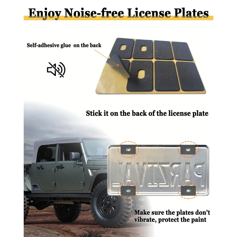 License Plate Pad: pasted on the back of the metal license plate to reduce vibration noise, avoid scratching the car paint, and the license plate rattle proof;