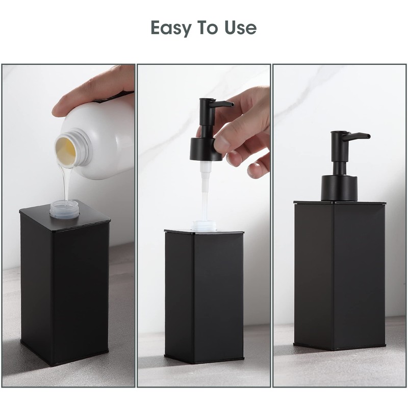 - Multi-Use:The black bathroom soap dispenser can be repeatedly filled with variety of room-temperature daily use liquids, such as shower, shampoo, hand soap, dish-washing detergent, laundry liquid, lotion, essential oil, etc.