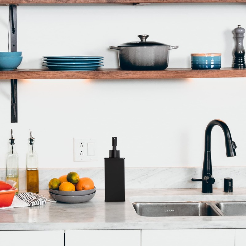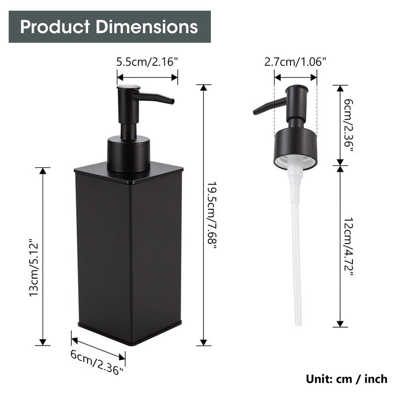 - High-Quality Metal:The bathroom soap dispenser is made of Premium Aluminium and a build-in plastic bottle, which is effectively waterproof and anti-rust. The black hand wash dispenser is a great addition to your kitchen accessories or bathroom accessories.