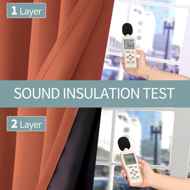 - SOUND PROOF: Our heavyweight double layer curtains panels are effective on absorbing sound 2 times than ordinary 1-layer curtains, to protect you from disturbing by outside neighbor or traffic noise.