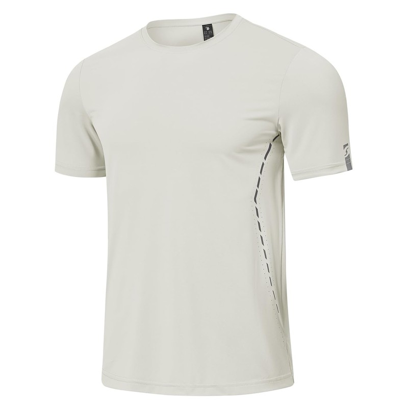 BGOWATU Men's Athletic Shirts Quick Dry Short Sleeve Workout T-Shirts with Reflective & Ventilation Holes for Running Gym Light Grey 3L