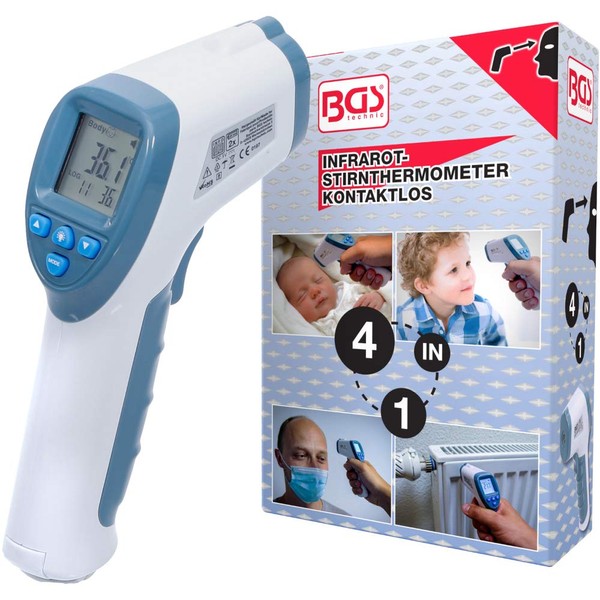 - LCD digital display with backlight, display option in °C and °F, acoustic notification at high body temperature possible