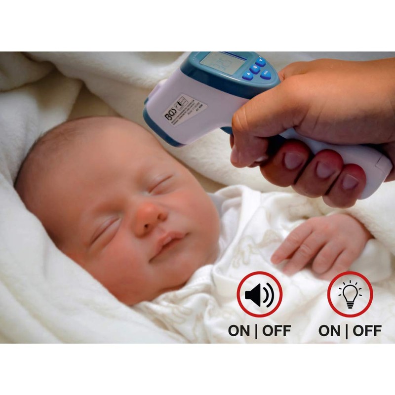 - Measures the human body or an object temperature. Suitable for babies, children and adults. Beeps and lighting can be switched on and off if necessary, so that sleeping babies and children are not awakened by the measurement