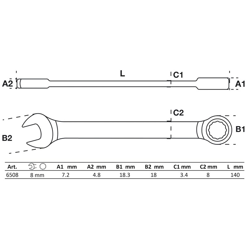 BGS 6508 Ratchet Ring Open-End Spanner SW 8 mm