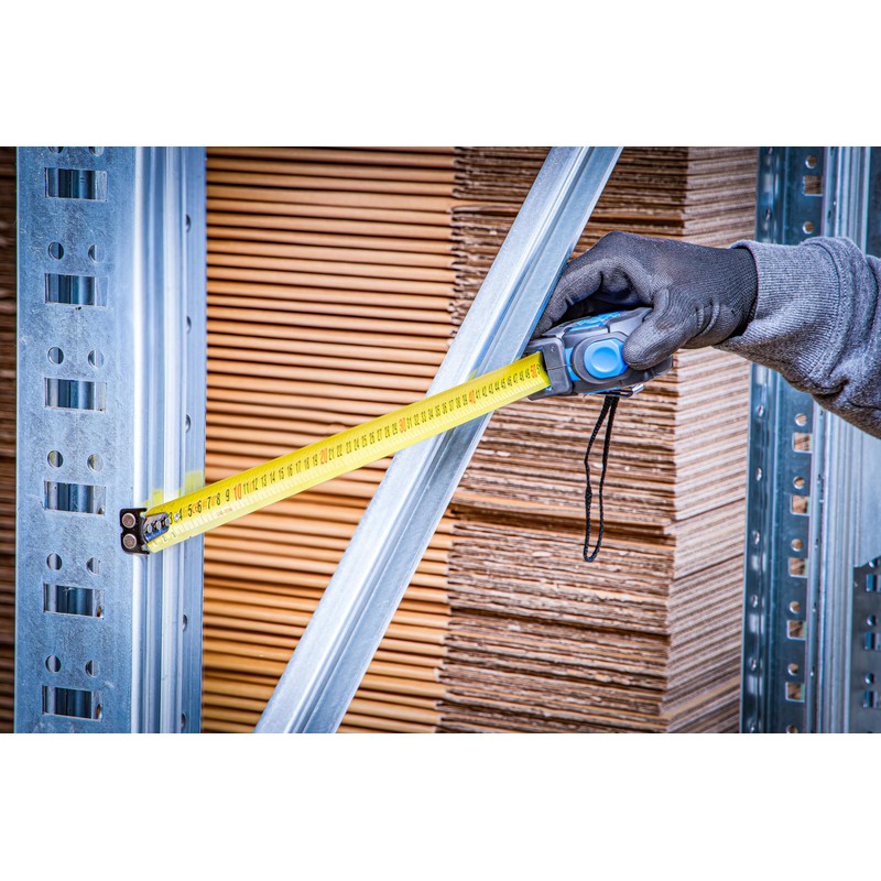 • Can be read both horizontally and vertically, with automatic tape retraction, magnetic stop and band lock, double-riveted, movable end hook for easy internal and external measurement