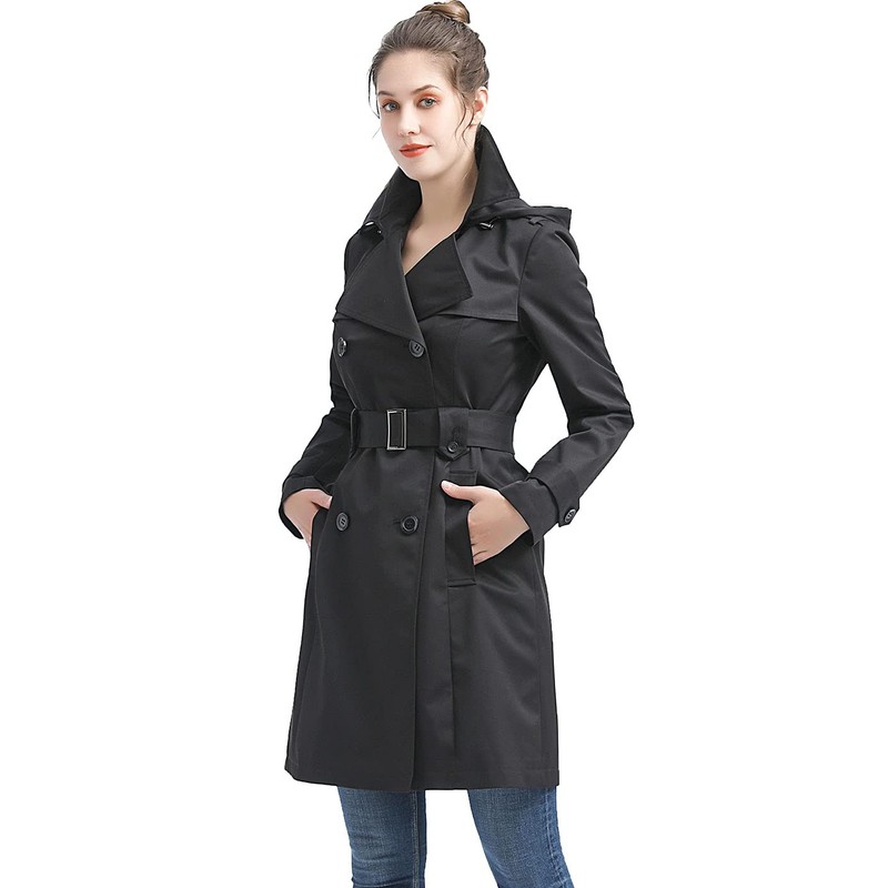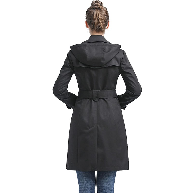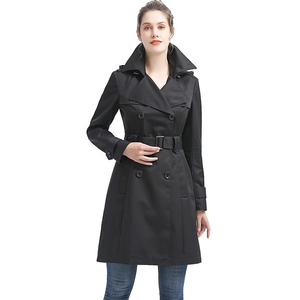 BGSD Women Emma Waterproof Hooded Trench Coat Black X-Small