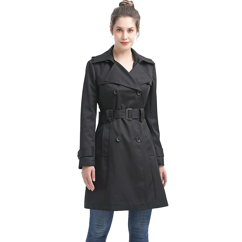 Classic trench coat with notched lapel and storm flaps, accented by buttoned belt loop makes a professional yet elegant statement.