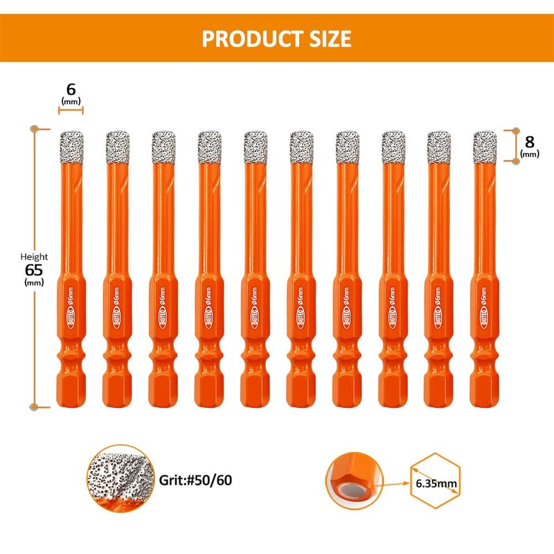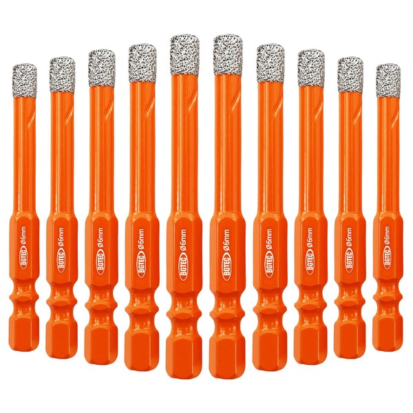 BGTEC Diamond Drill Bits Set Core Drill bit with Quick Change Hex Shank, 10pcs 1/4"" Tile Drill Bit for Ceramic Tile Porcelain Tile Marble Granite, Orange