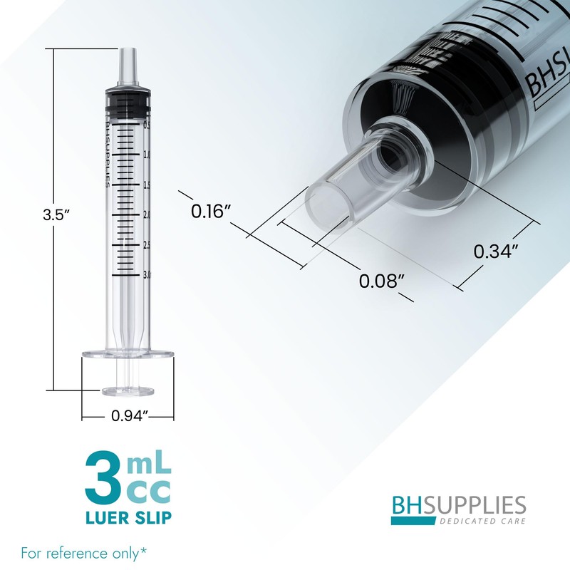 BH Supplies 3ml Luer Slip Tip Syringe - (No Needle) - Sterile, Individually Wrapped - 100 Syringes