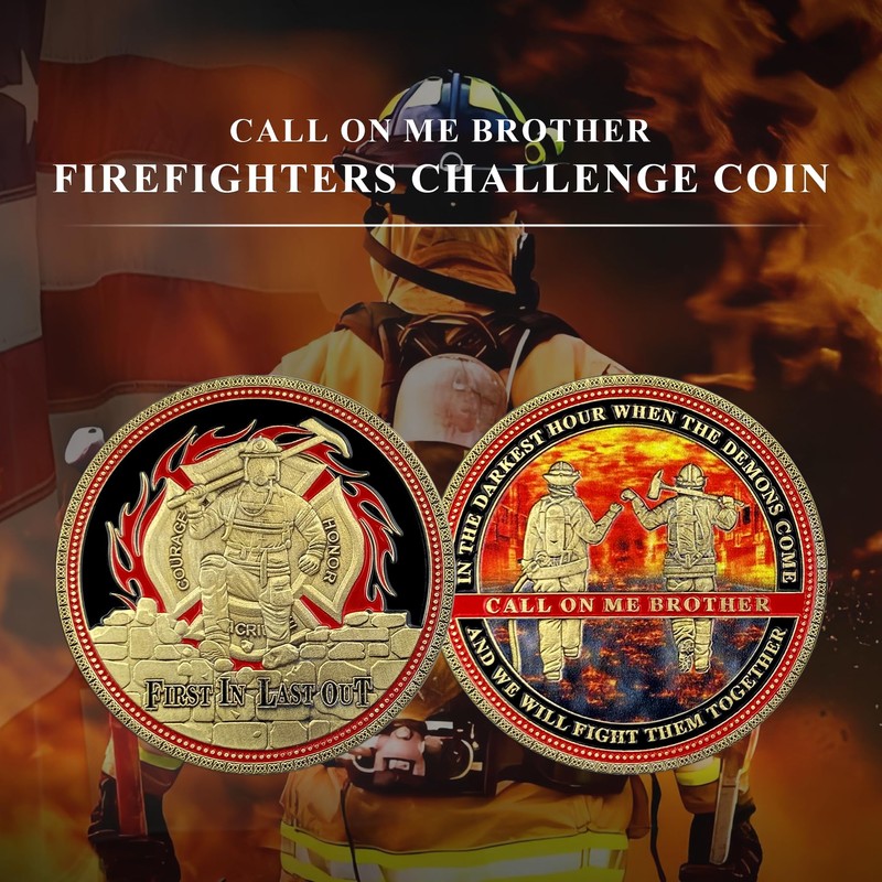 BHealthLife Firefighters Challenge Coin Call On Me Brother Fireman Rescue Department Commemorative Coins Gift - First in Last Out