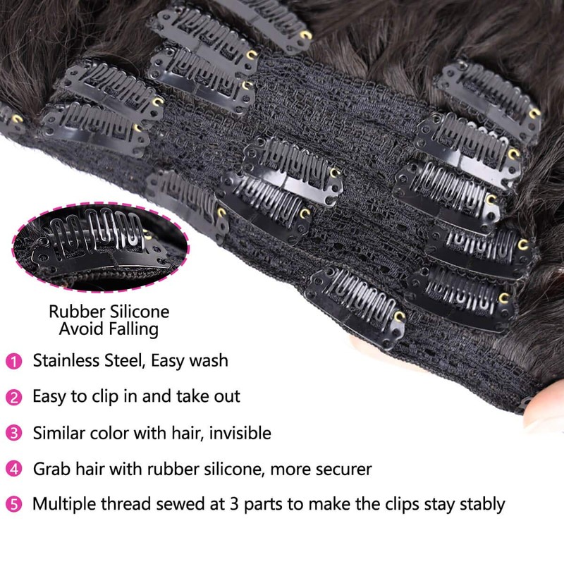 - 3.Hair Clips - High Quality metal clips are well sewn into each weft firmly, comfortable and durable, the hair clips are easy to put in and take off as you want.