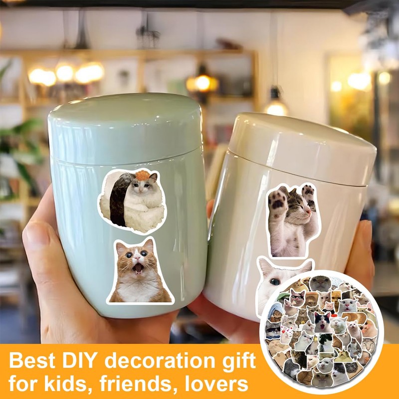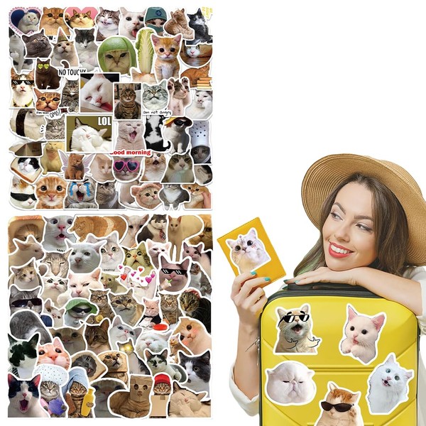 BHIPKOT Cat Meme Stickers for Laptop (Pack of 100) Gift for Children Teenagers Adults Boys Meme Stickers Waterproof Vinyl Stickers for Scrapbook Skateboard Car Luggage