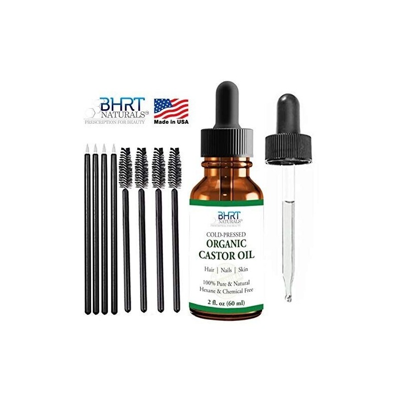 - Contains: 1 x 2 oz. bottle of Organic, cold-pressed, 100% pure BHRT Naturals Castor Oil, 4 x Eyebrow Applicator Brushes & 4 x Eyeliner Applicator Brushes.
