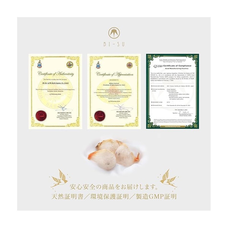 • High-level quality and technology! Using the technology accumulated in Bisu's own laboratory, we use natural bird's nests, which are richer in beauty ingredients than cultivated nests! While there are many malicious counterfeits, Bisu only collects nests that are strictly controlled by the Malaysian government, providing you with "100% natural" swiftlet nests.