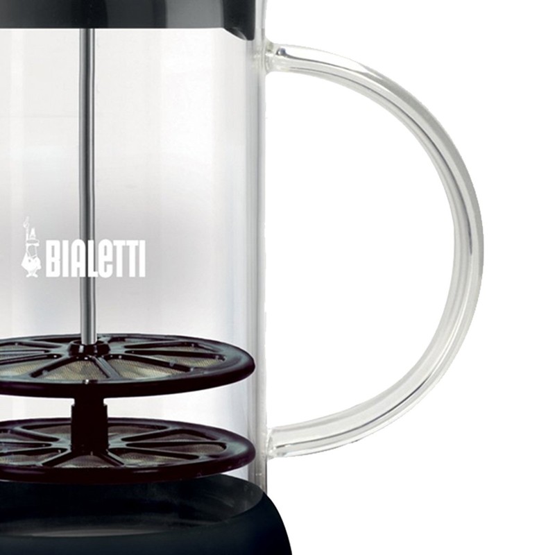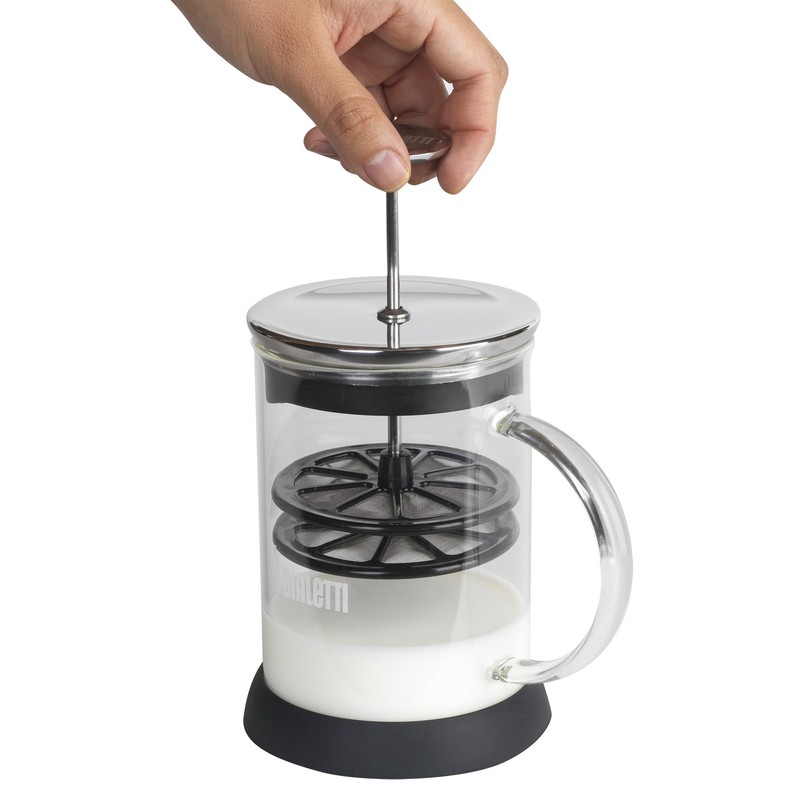 The Bialetti manual milk frother produces thick, rich frothed milk in seconds. A simple and easy way to create lattes, cappuccinos or hot chocolate in the comfort of your own home. The double action frother makes extra-thick foam and the vessel includes a non-slip base. Glass vessel allows it to be placed in the microwave to heat milk. Combine a Bialetti Moka Express with this product and be your own barista.