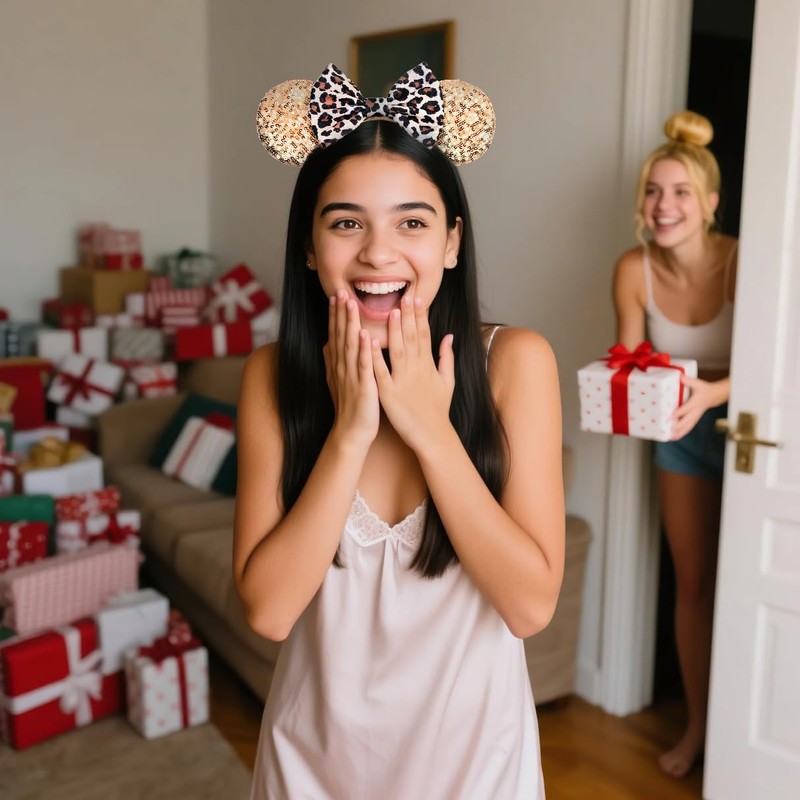 - Versatile Glam Design Champagne gold sequin-covered ears paired with a leopard print satin bow. The blend of sparkle and wild texture transitions effortlessly from daytime fun to evening elegance.