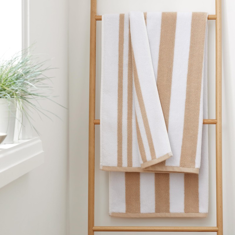 Bianca Reversible Stripe 50x85cm Cotton Jacquard Hand Towel Natural