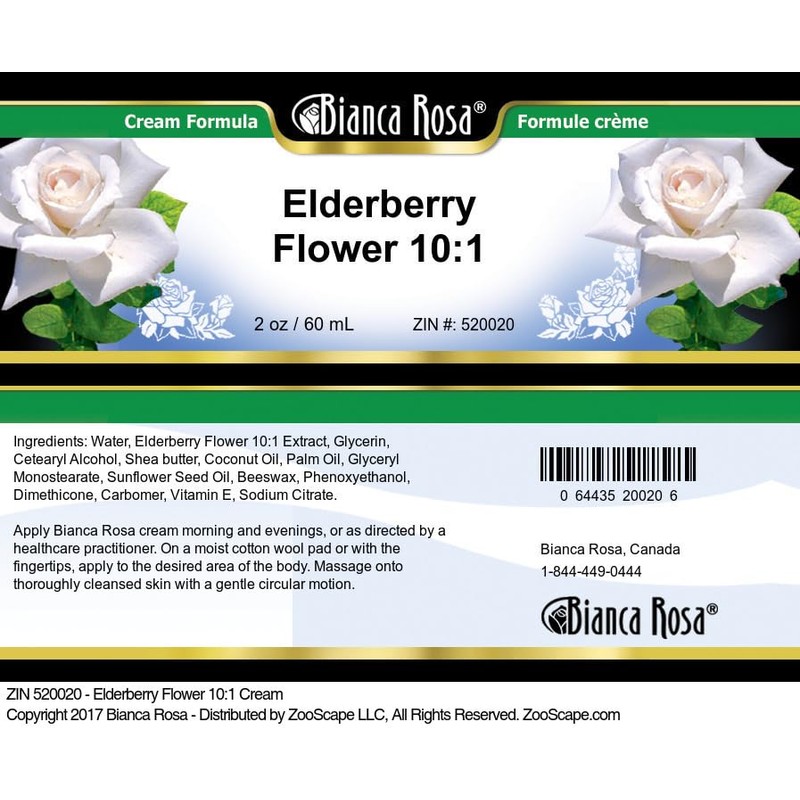 Elderberry Flower 10:1 Cream (2 oz, ZIN: 520020): Elderberry Flower 10:1 Cream - Country of Origin: USA - Latin Botanical Name: Sambucus Nigrum - Plant Parts Used: Flower - Apply Bianca Rosa cream morning and evenings, or as directed by a healthcare practitioner. On a moist cotton wool pad or with the fingertips, apply to the desired area of the body. Massage onto thoroughly cleansed skin with a gentle circular motion. - TerraVita is an exclusive line of premium-quality, natural source products that use only the finest, purest a