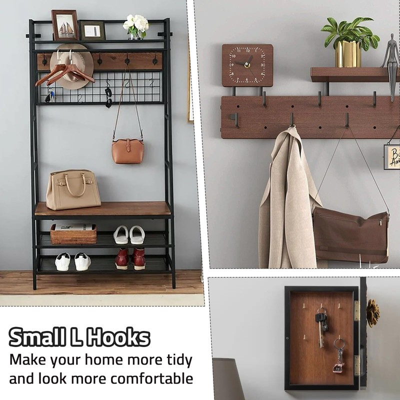 - Small l Hooks is perfect for securely hanging light weight items such as necklace, bracelets, photos, lights, curtains, ropes, chains, mugs, feeders, planters, kitchen towels, and more. The hooks can also be used for hanging Christmas decorations, Halloween decorations, and various holiday decorations.