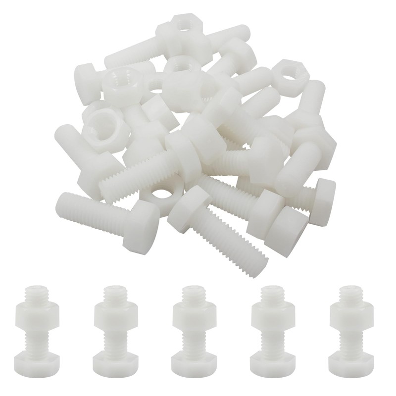 Biaungdo 20 Pair M10 x 30mm Nylon Hex Bolts, White Plastic Hex Bolts Full Thread Hex Head Screws and Nuts Set