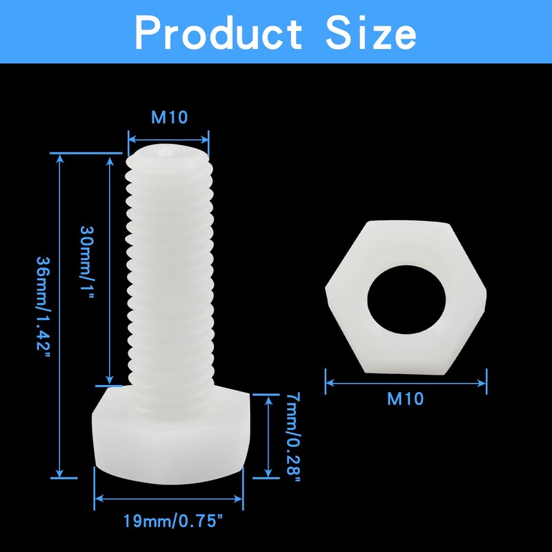 - Product Size: Nylon screw thread size: M10x30mm; Diameter: 10mm/0.39" ; Total Length: 36mm/1.42"