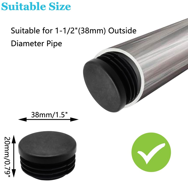 - Product Size: 1-1/2" round plastic plugs will only fit 1-1/2 (38mm)outside diameter(not inside diameter) round pipes or pipes. Not suitable for 1-1/2" ID pipe and square pipe.