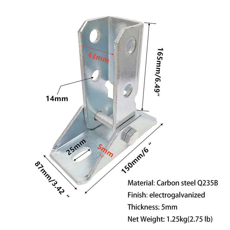 - 【For use with】: Use for with 1-5/8" Wide and All 1-5/8" or Taller Strut Channel, Adjustable angle: 0~180°.