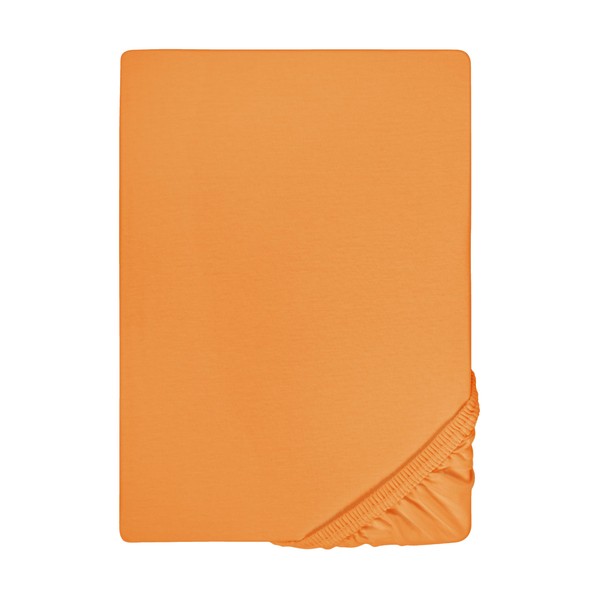 biberna 0077144 Fine Jersey Fitted Sheet (Mattress Height Max. 22 cm), Combed Cotton, Super Soft, 1 x 90 x 190 cm > 100 x 200 cm, Nectarine