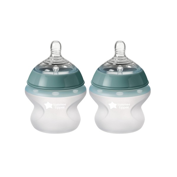 Biberón anticólicos de silicona para bebés Closer to Nature de Tommee Tippee, 5 oz., tetina similar a la del pecho para un agarre natural, válvula anticólicos, tacto suave, 2 unidades