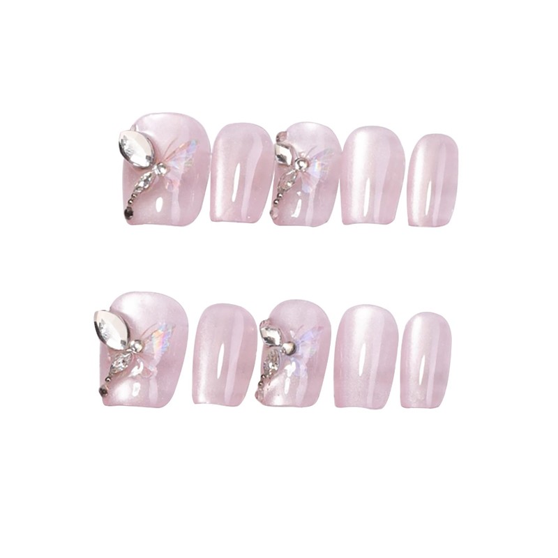 BIBII Nails Handmade Nail Tip, Korean Popular Nail Tip, Short Size, 10 Pieces, 100% Handmade Nails Press on Nails, Pink, 3D Nails, Fantasy, Floral Pattern, Butterfly, Spring/Summer, Reusable Nail Tip,