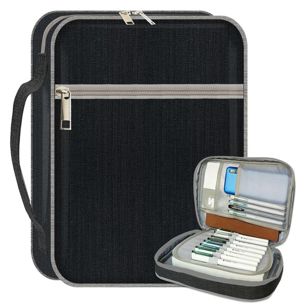 Bible Cover Large Carrying Book Case Multi-Functional Bible Case Stationery Pencil case Bible Organizer (Black)