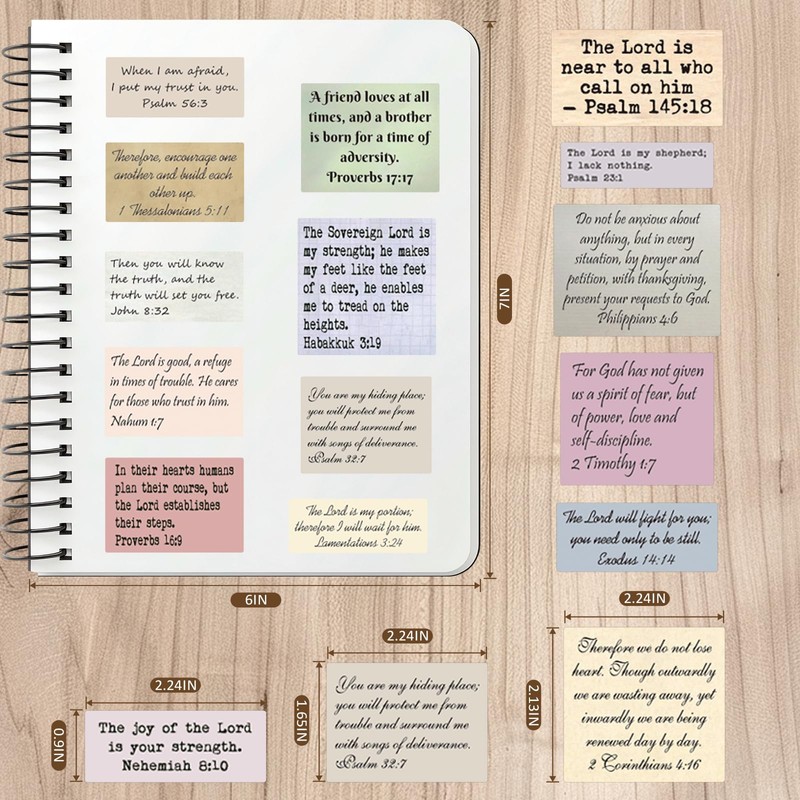 Specifications: 180 pcs unique bible verse stickers, each scripture stickers ranging in size from 0.86in to 2.64in.