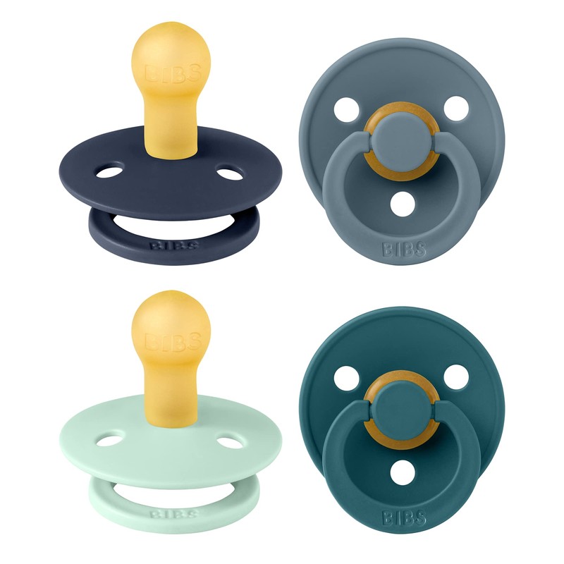 • BIBS Colour is the original pacifier with a round classic shield and a round nipple. The round nipple and matte lightweight shield are designed to imitate the shape of a mother’s soft nipple.