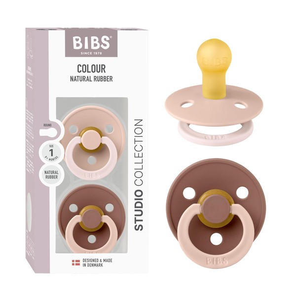 BIBS Colour Studio 2 Pack BPA Free Cherry Shape Nipples Natural Rubber/Latex, Made in Denmark, Size 1 (0-6 Months) - Blush/Woodchuck