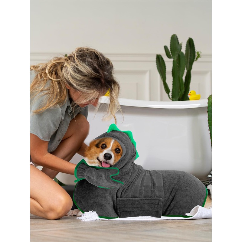 Bibykivn Dog Bathrobe, Adjustable Tightness Dog Bathrobe with Velcro Fastening, Quick-Drying Dog Bathrobe, for Large, Medium, Small Dogs/Cats (Grey 01, XL)