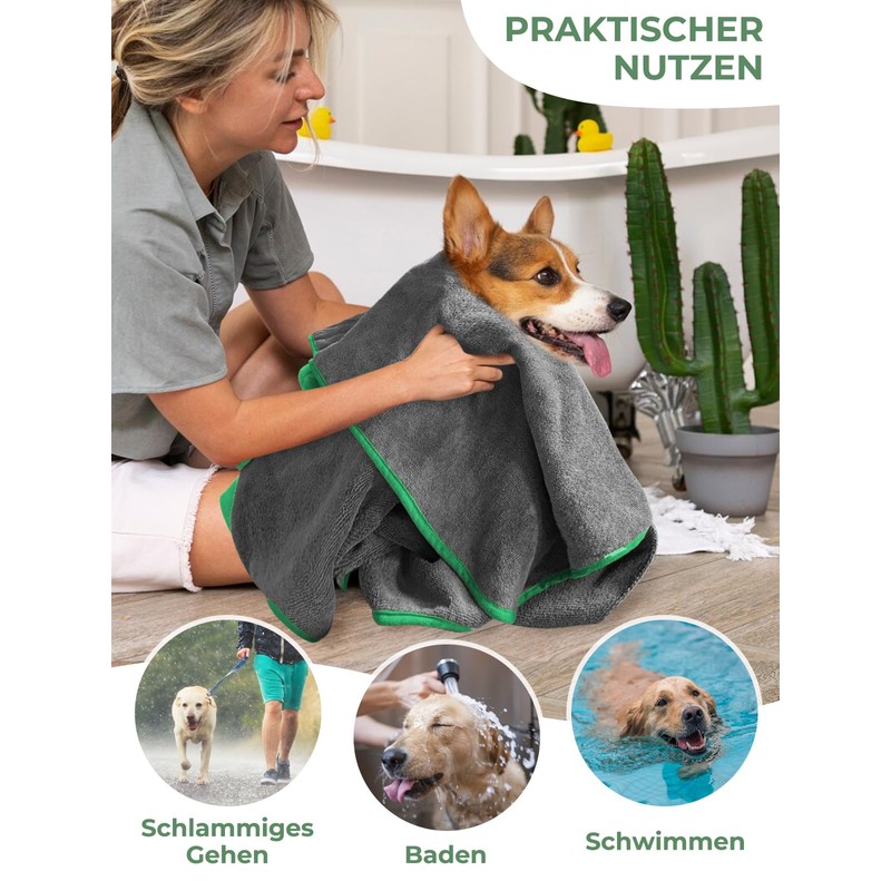 - Microfibre dog bathrobe, easy to care: the dog bath towel is machine washable at room temperature, but should not be tumble dried, bleached or ironed. Reusable and odourless, ideal for different dog sizes