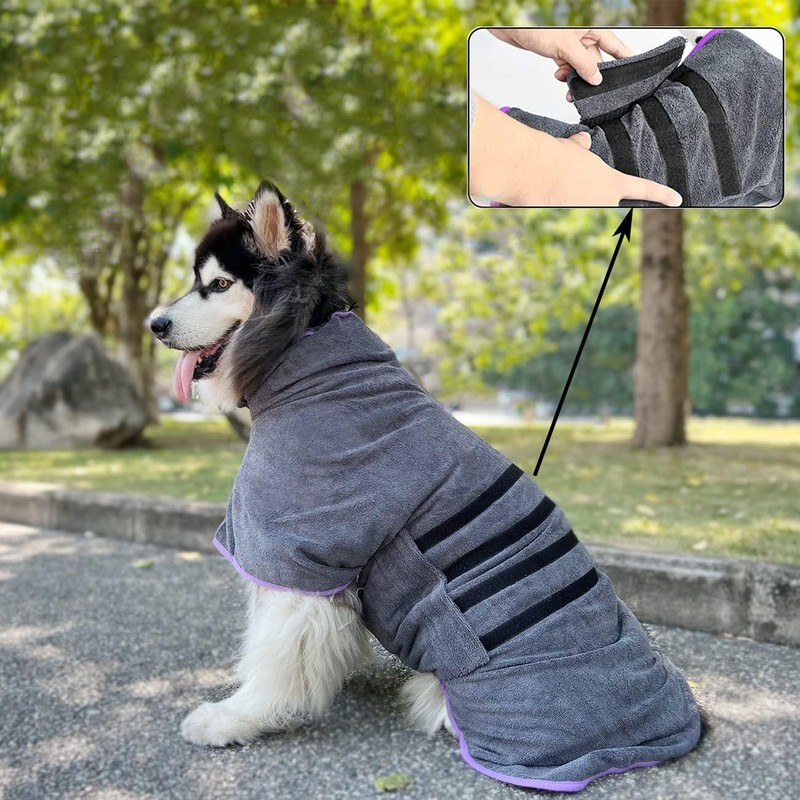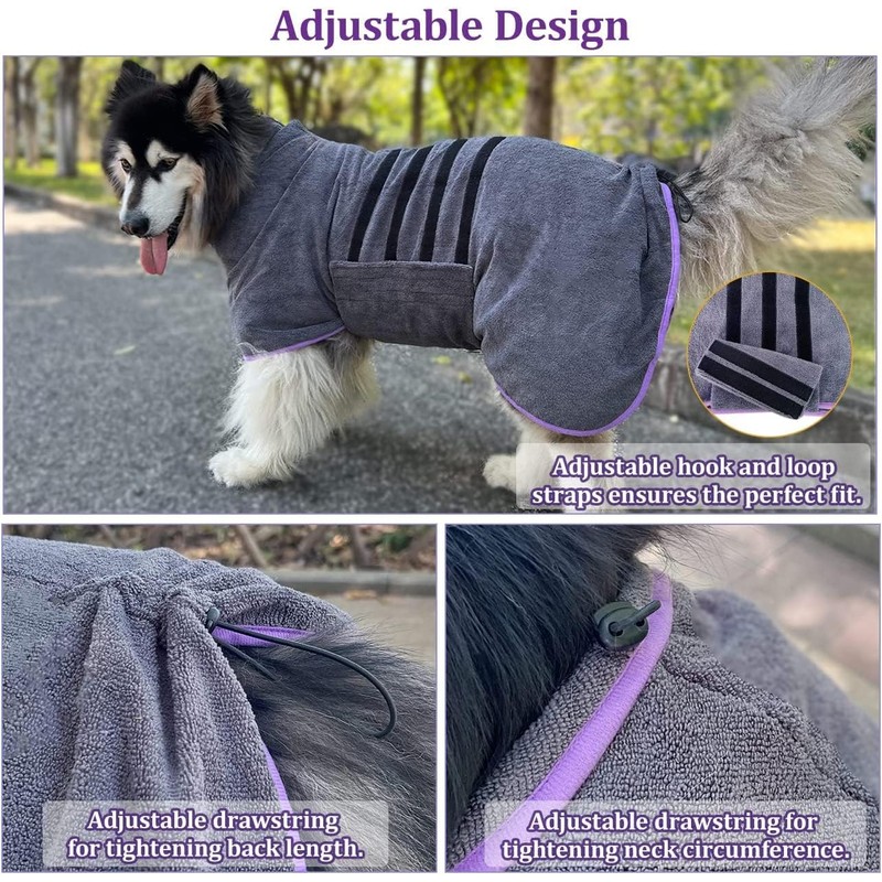 Bibykivn Dog Bathrobe, Adjustable Tightness Dog Bathrobe with Velcro Fastening, Quick-Drying Dog Bathrobe for Medium/Large Dogs (Grey, S)