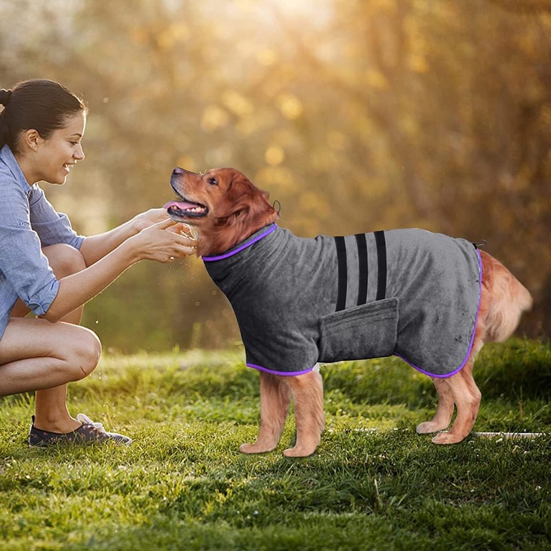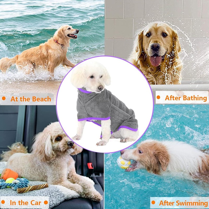 - Super absorbent and quick-drying: the dog bathrobe made of 500 g microfibre, which absorbs water quickly. Effectively save time drying your furry friend after bathing, swimming or walking on rainy days and keep your pet warm and comfortable
