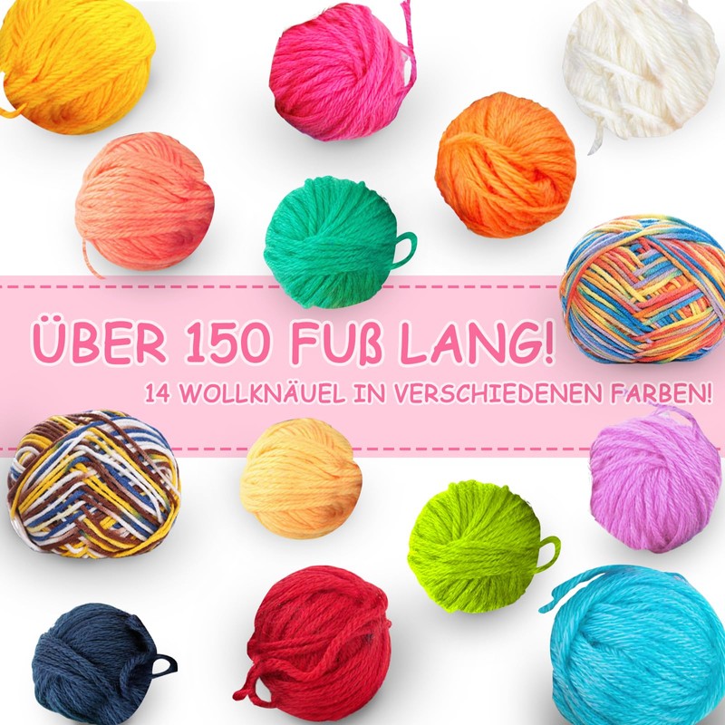 - Creative crafts: the set contains 14 bright colours of high-quality wool, with which children can create beautiful works such as tapestries, scarves, coasters, bags or other handmade pieces of fabric in a short time - there are no limits to their imagination