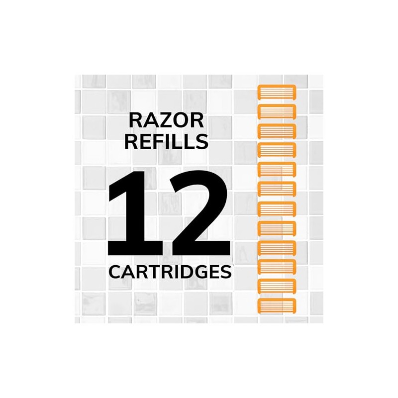 BIC BIC Flex 5 Refillable Refill Razor Cartridges for Men, Long-Blade Razors for a Smooth and Comfortable Shave, 12 Refill Cartridges