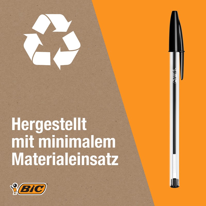 - Lieferumfang: 50 Kugelschreiber von BIC Cristal Medium / Kugeldurchmesser: 1,0mm / BIC Kugelschreiber Schwarz / Nachhaltige Begleiter - ausgezeichnet mit dem NF-Umweltzertifikat